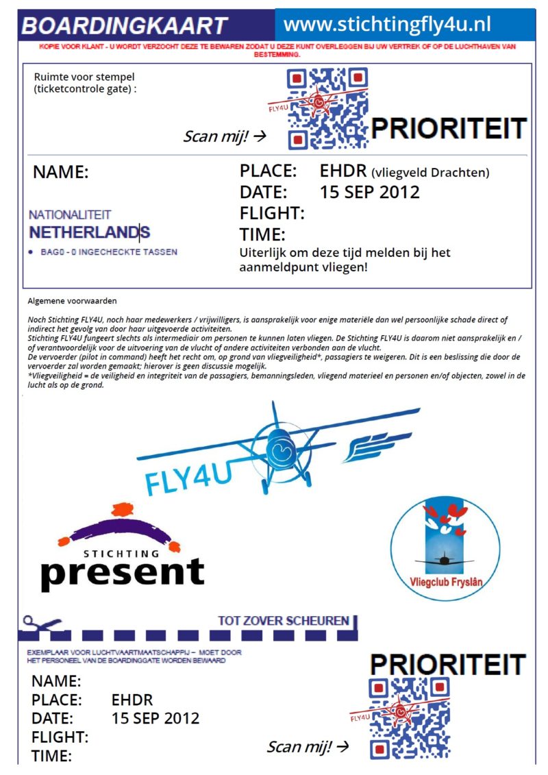 De tickets zijn vandaag (zondag 2 september) op de post gegaan! Heb jij zo’n gave boardingkaart ook al op de deurmat liggen? Dan ben jij 15 september ook welkom als co-piloot! Heb je er al zin in? Laat dan een berichtje achter op ons gastenboek: https://stichtingfly4u.nl/gastenboek/ . We vinden het leuk om iets van jullie te horen en zien je graag over twee weken op het vliegveld in Drachten! BE THERE!